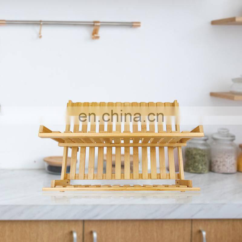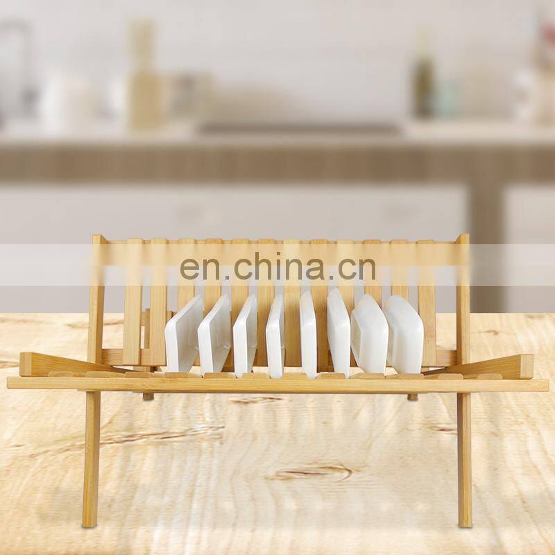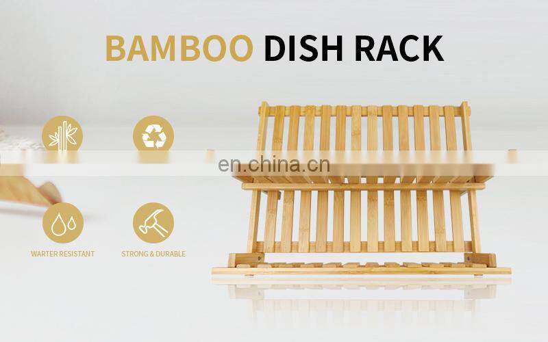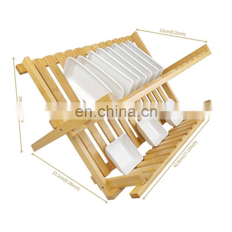 Amazon Hot Sales Kitchen Dish Rack Bamboo Plate Drying Rack