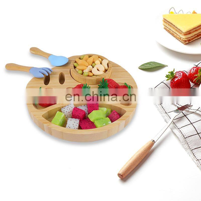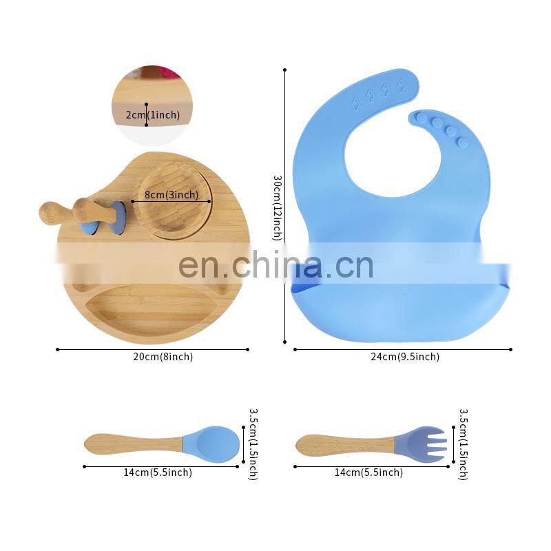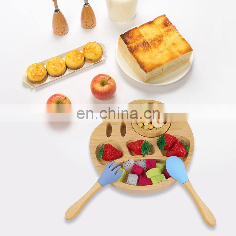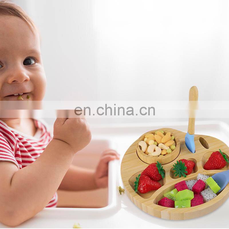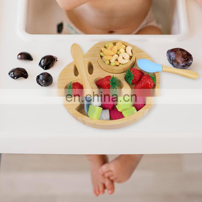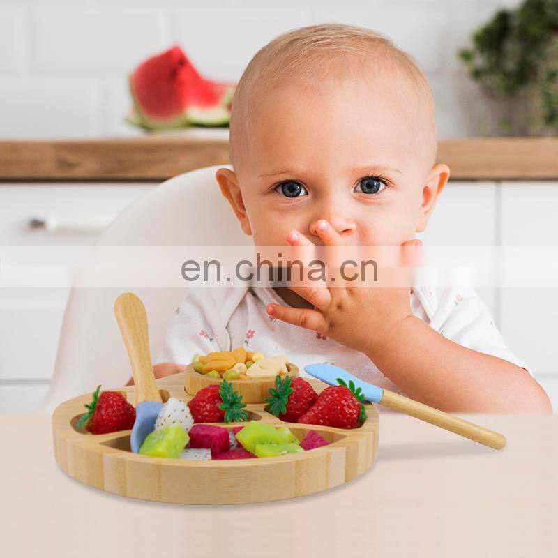 Eco-friendly Tableware Bamboo Baby Bowl Bowl Feeding Plate With Silicone Suction And Spoon