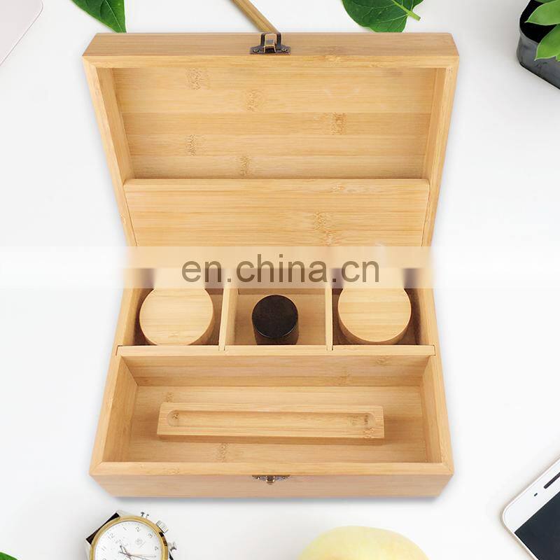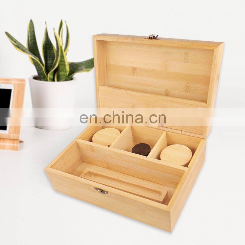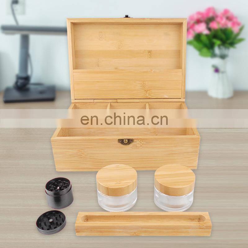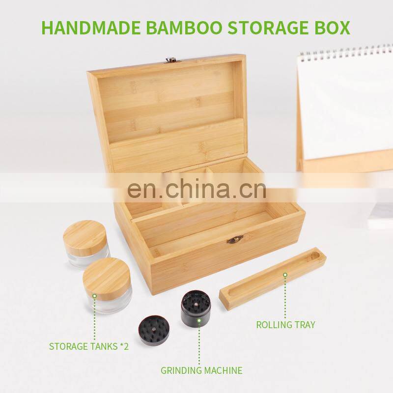 2 Airtight Containers Large Bamboo Stash Box WIth Sliding Rolling Tray
