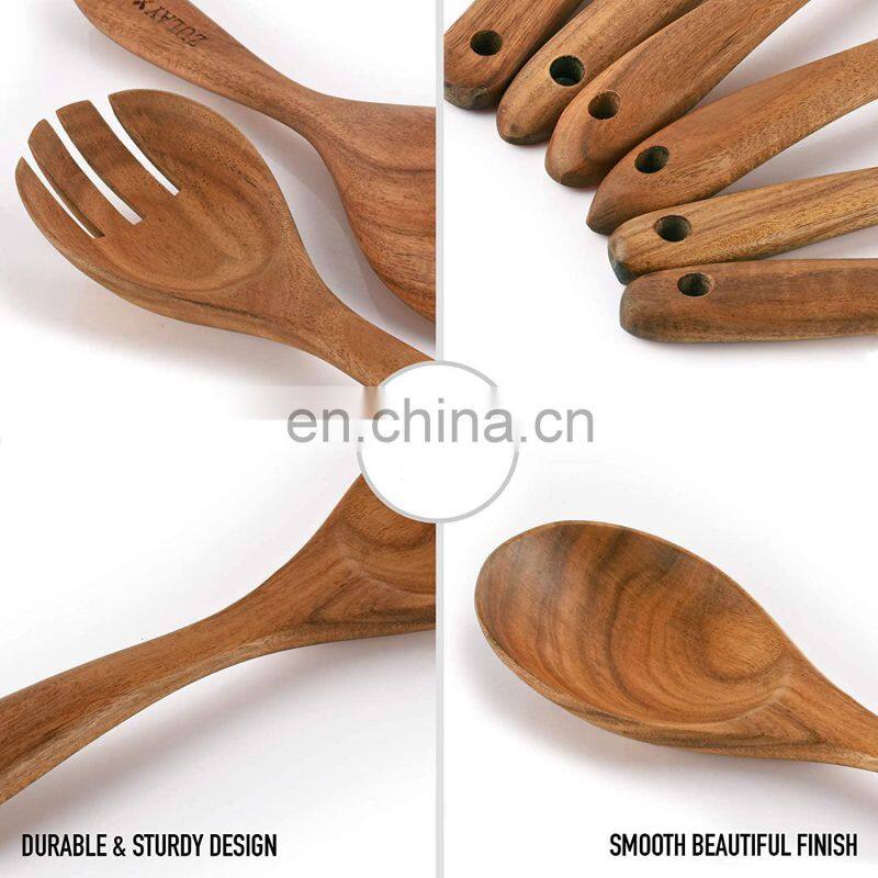 Natural Wood Utensils Kitchen Ware Cooking Utensils Set Spoons And Spatulas Wooden Spoons For Cooking Salad Fork