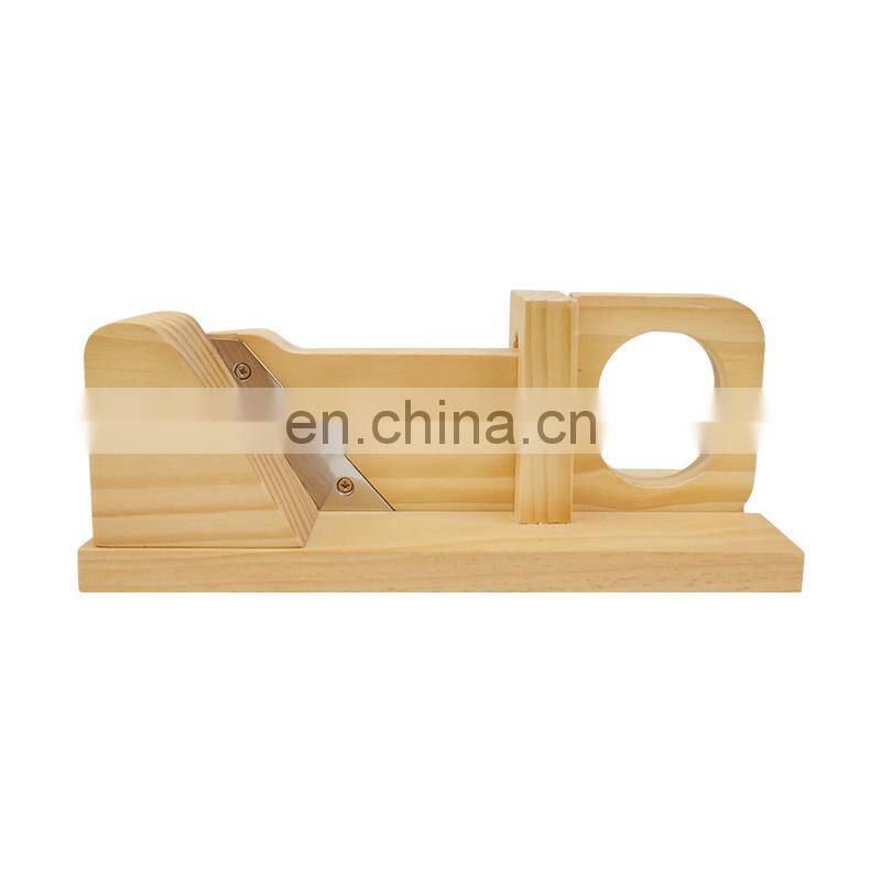 Bamboo Sausage Cutter Slicer Durable Rubber Tree Wood With Stainless Steel Blade