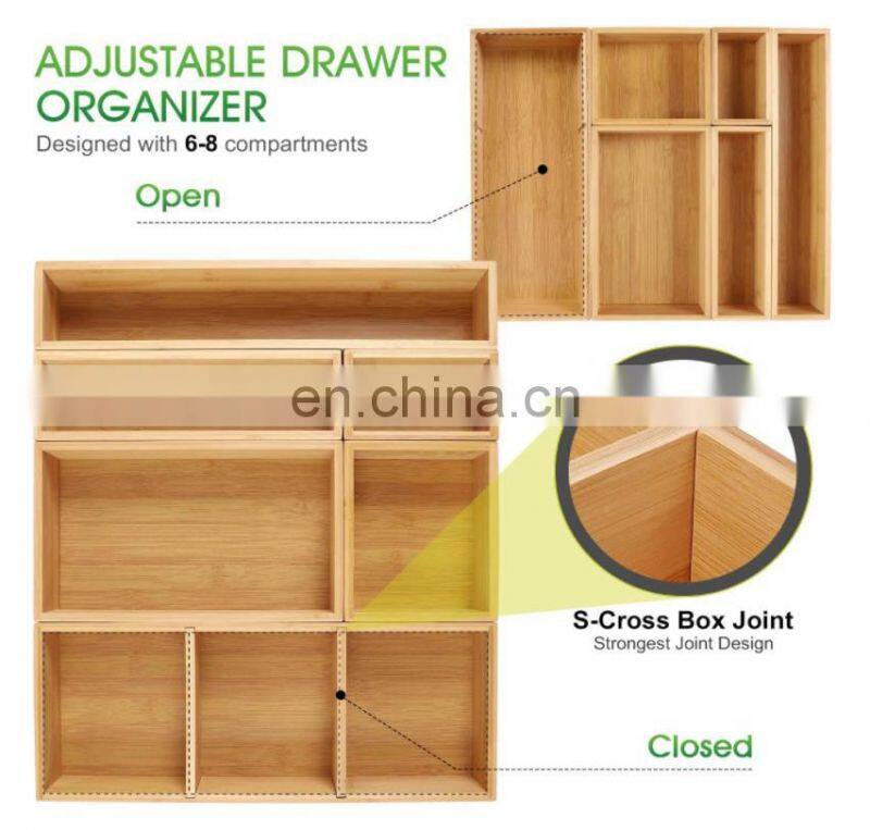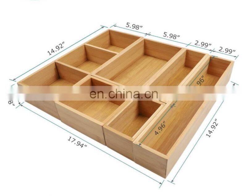 Home > Products > bamboo kitchenware > 6-Piece 8 Compartments Bamboo Kitchen Drawer Organizer Adjustable Cutlery and Utensils Tray