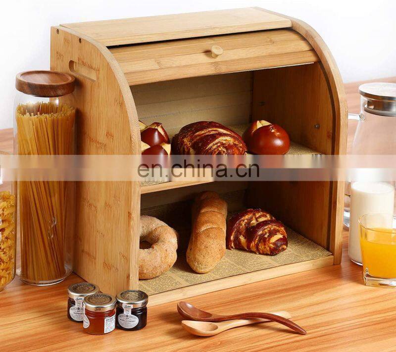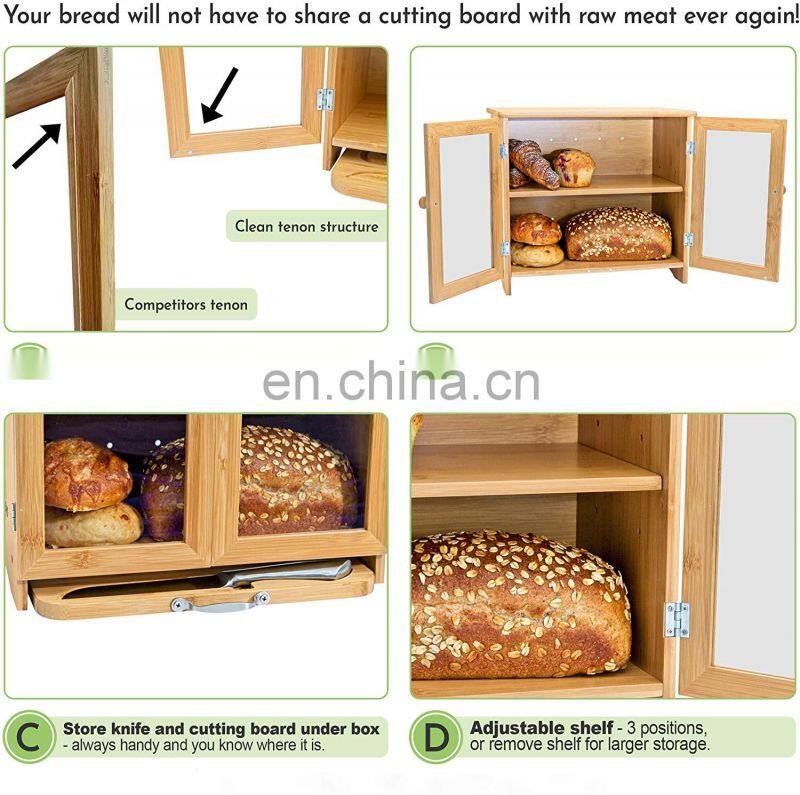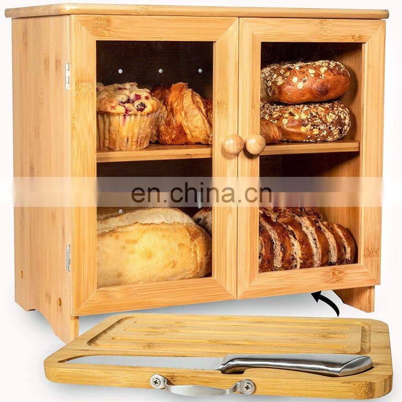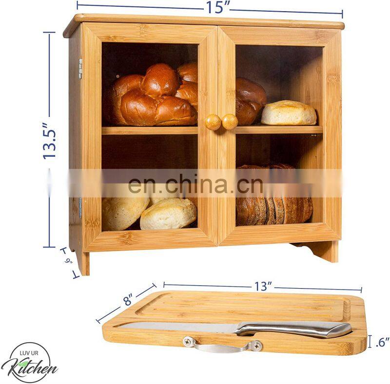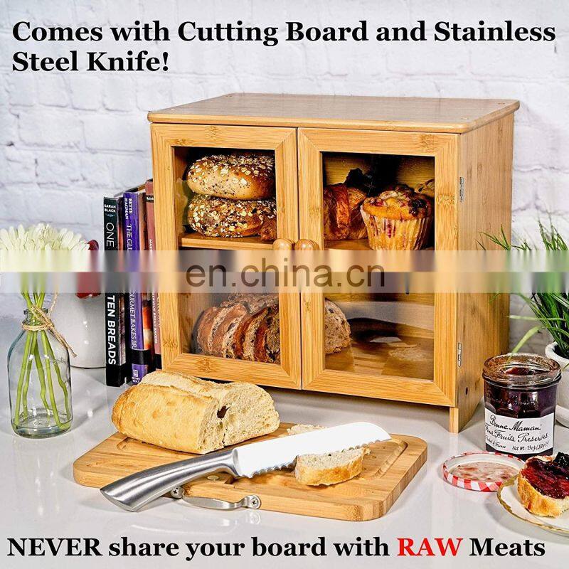 Kitchen Large Bamboo Bread Box For Kitchen Countertop Comes With Thick Bamboo Cutting Board And Stainless Steel Bread Knife