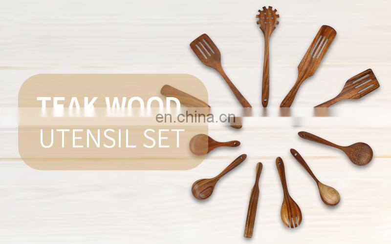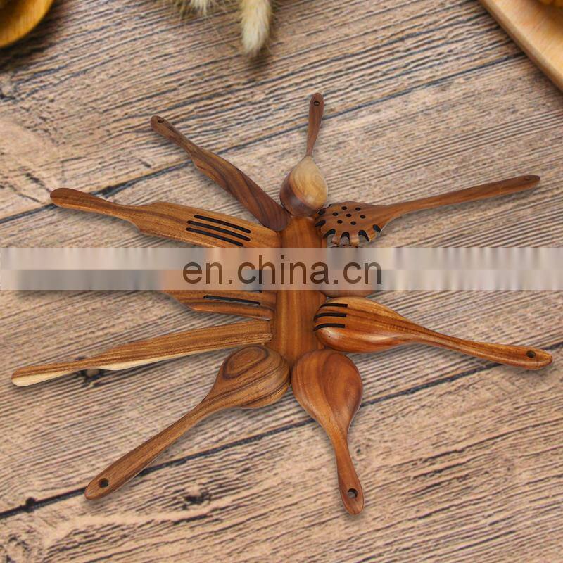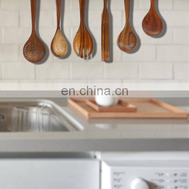 Wooden Utensils Set for Kitchen Handmade Natural Teak Cooking Spoons Wooden Spatula for Nonstick Cookware (7 Sets)