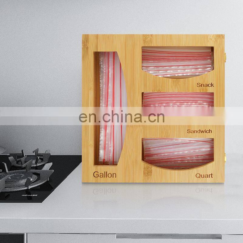 Wall Mount Bamboo Ziplock Bag Storage Organizer And Dispenser Drawer Bamboo Ziplock Bag Organizer For Kitchen With Lock