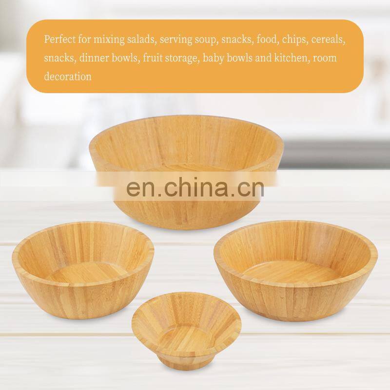 Cheap 100% Natural Round Salad Bowl Bamboo Wooden Bowl Set