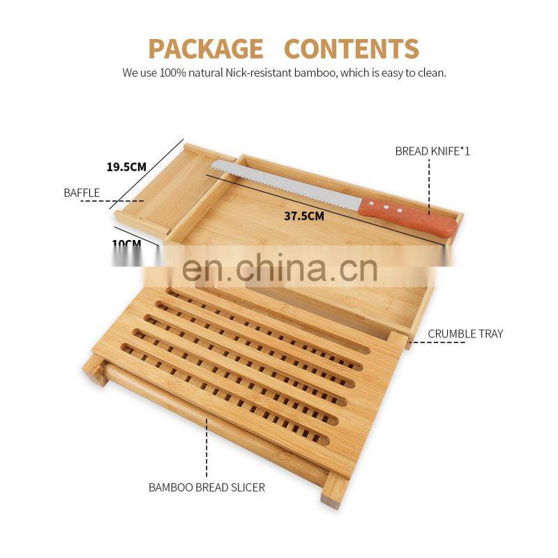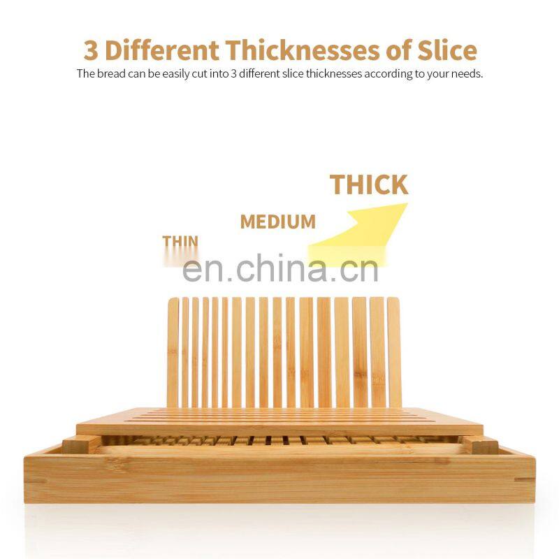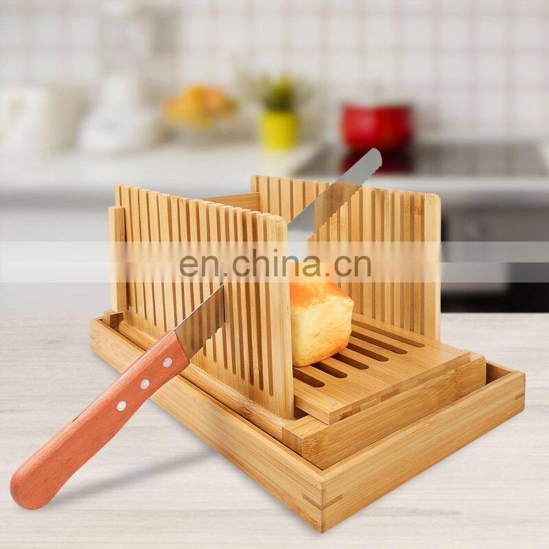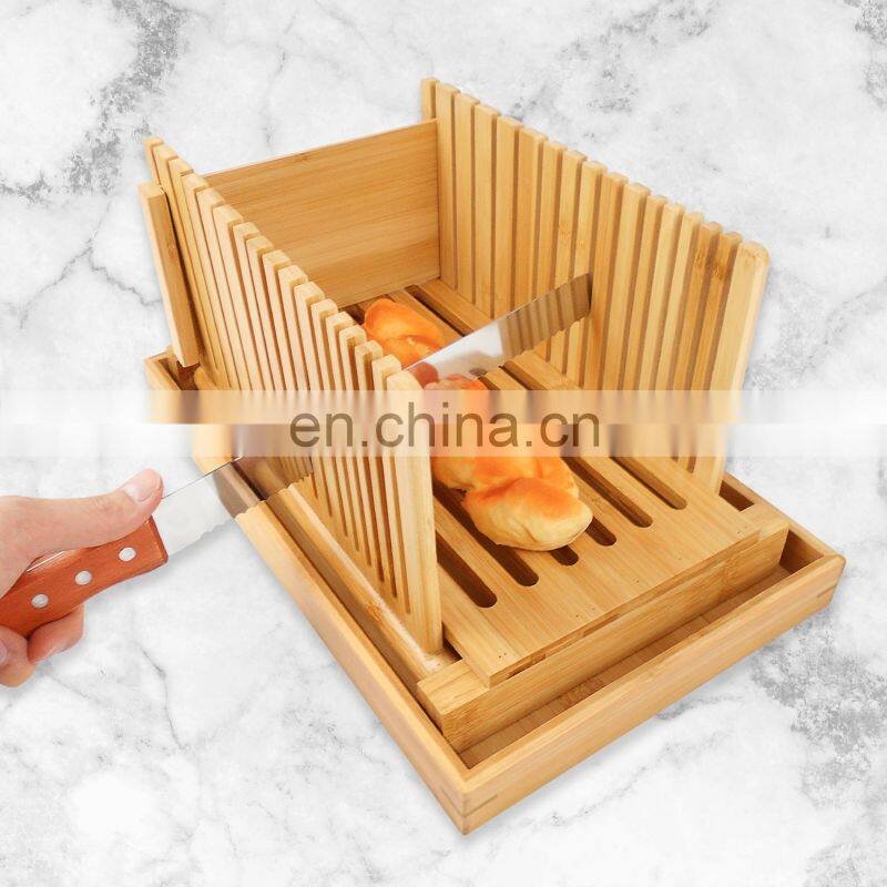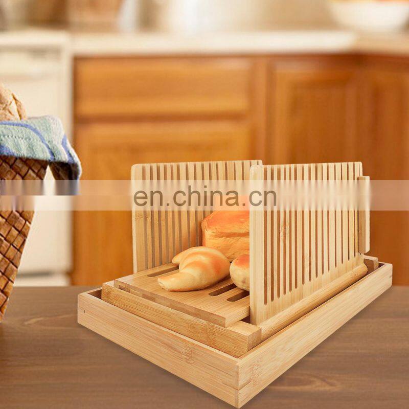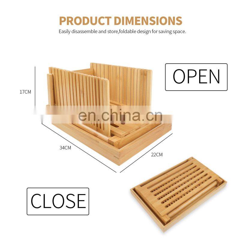 Home > Products > bamboo kitchenware > Bamboo Bread Slicer for Homemade Bread Loaf Wooden Bread Cutting Board With Crumble Holder Foldable and Adjustable