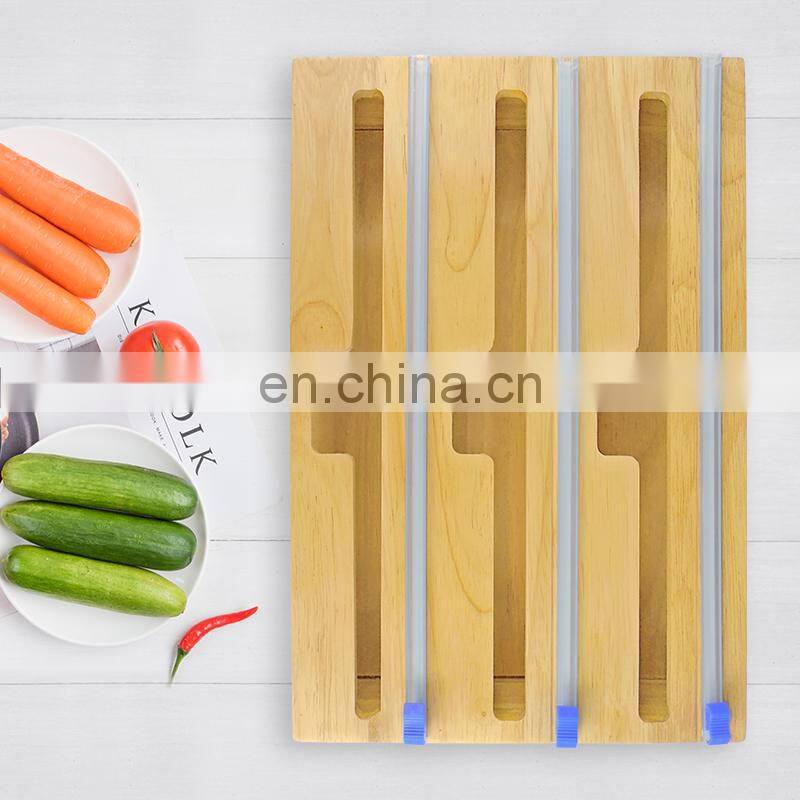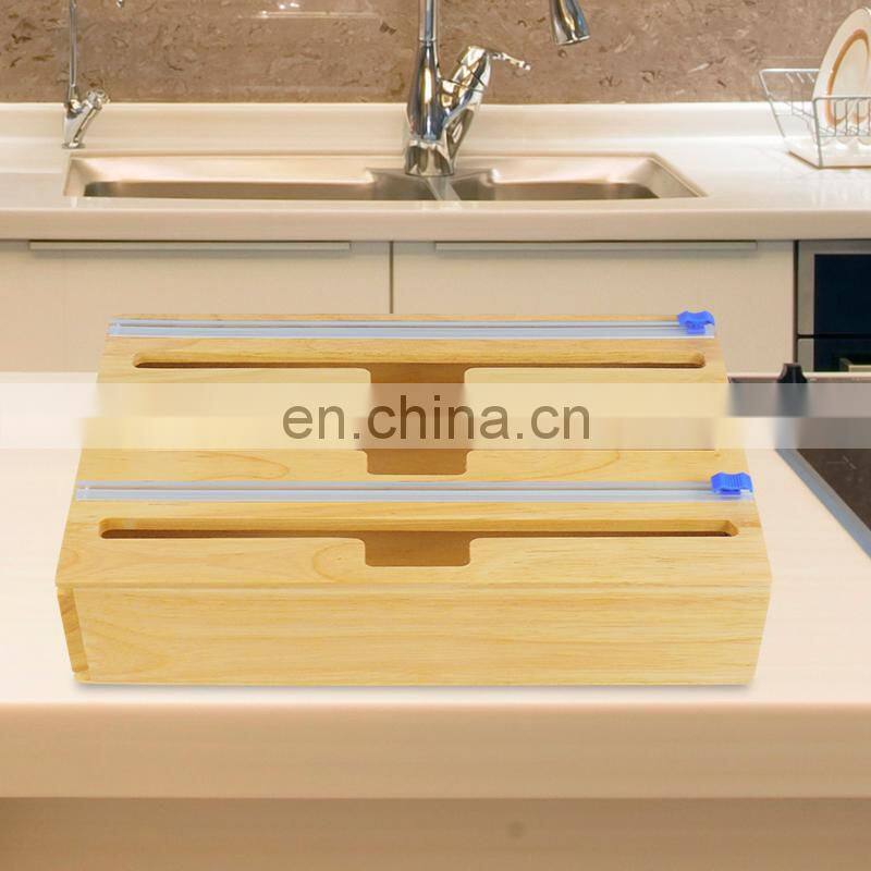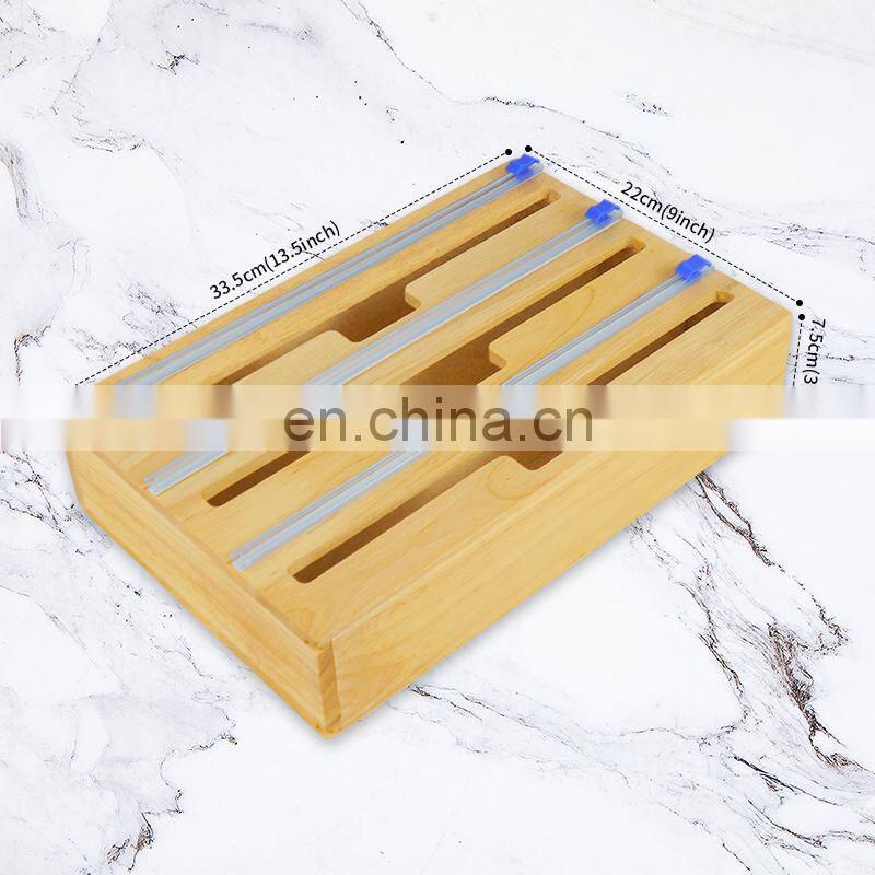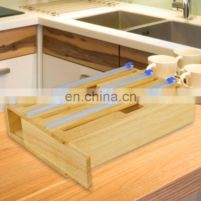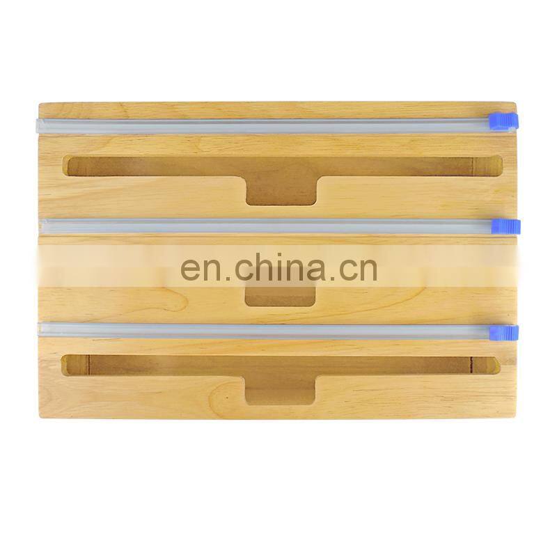 Home > Products > bamboo kitchenware > 3 in 1 Wrap Dispenser With Cutter Plastic Wrap Aluminum Foil and Wax Paper Dispenser for Kitchen Drawer