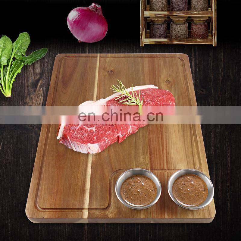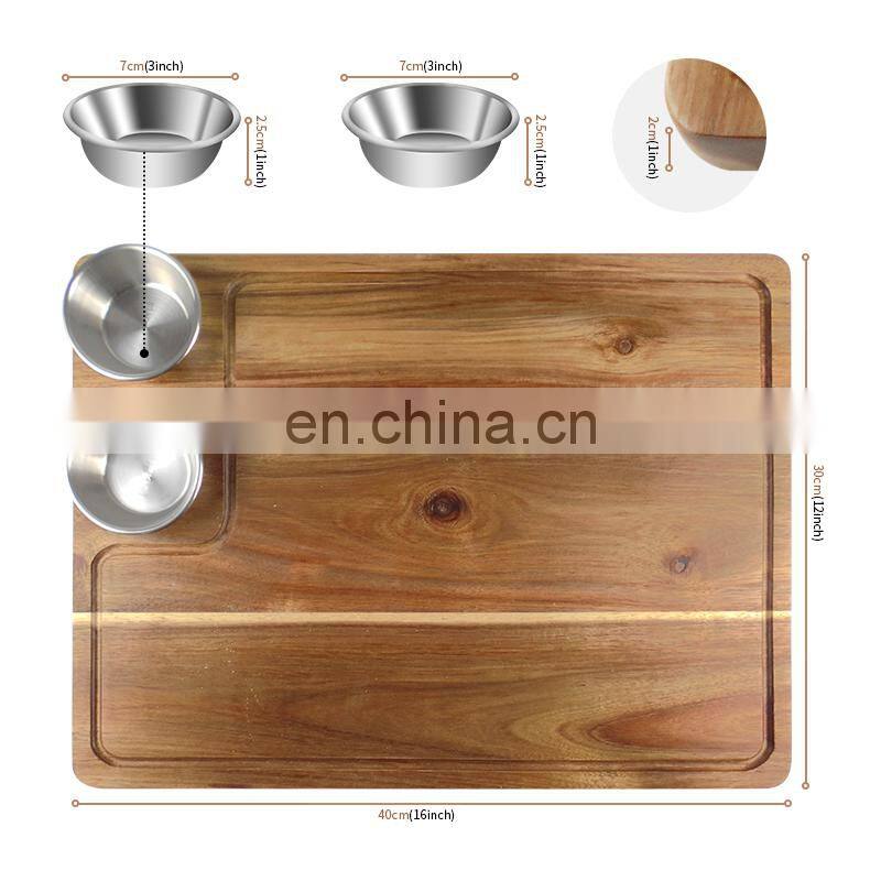 Home > Products > bamboo kitchenware > Large Wood Cutting Board for Kitchen With Juice Groove and Stainless Steel Bowls