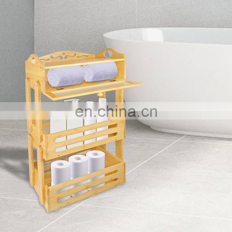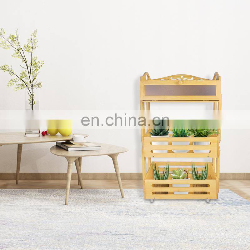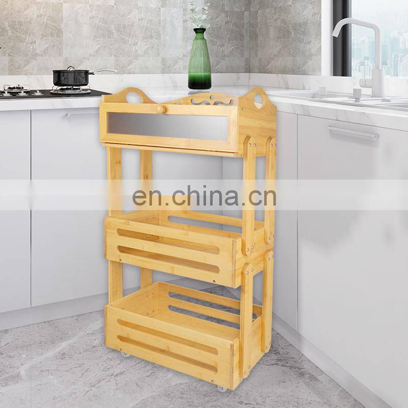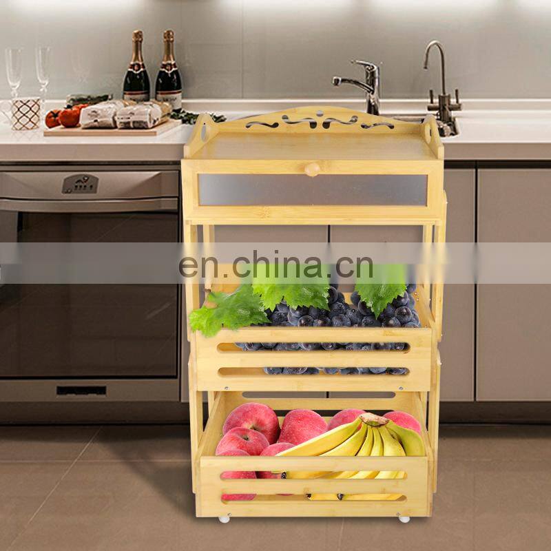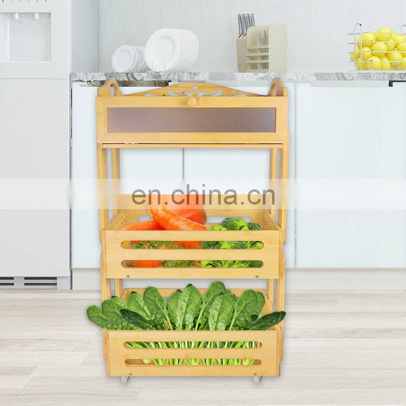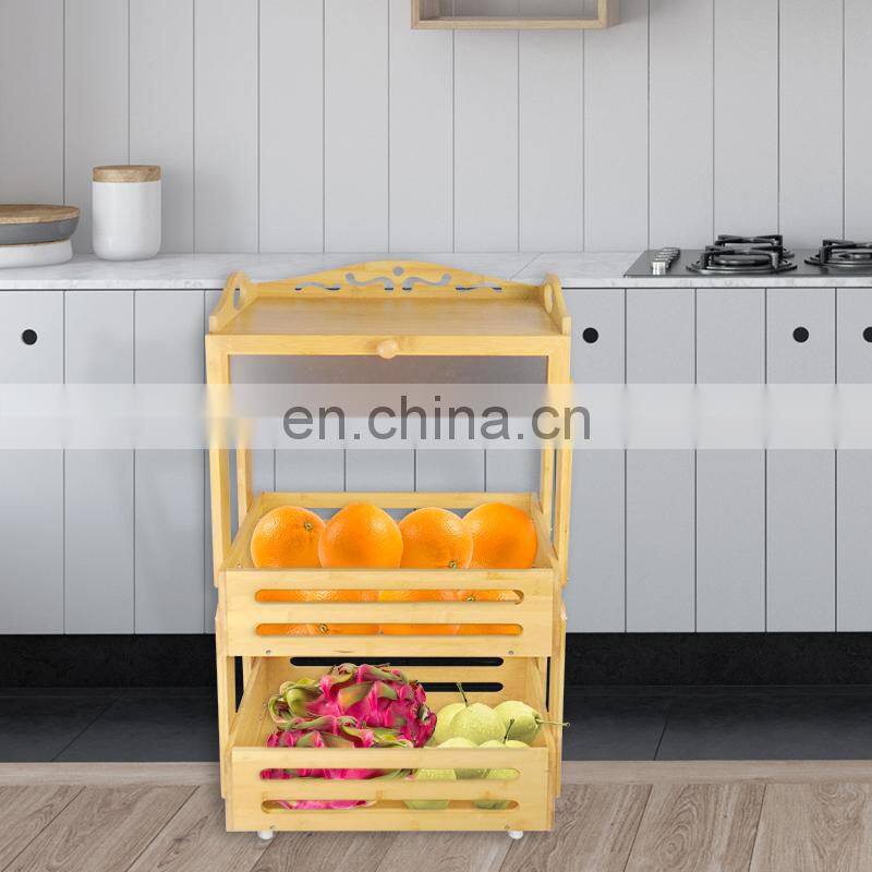 Hot Sale 3 Tier Vegetable Storage Organizer Serving Trolley Cart Wood Bamboo Trolley Kitchen Rack