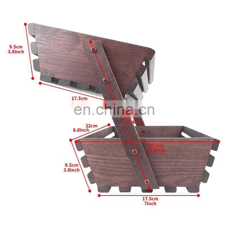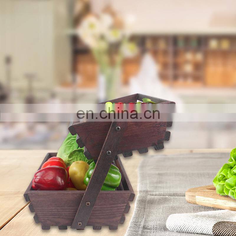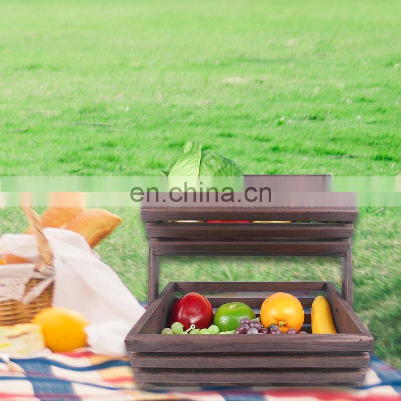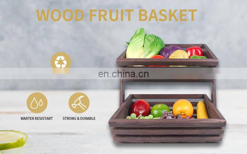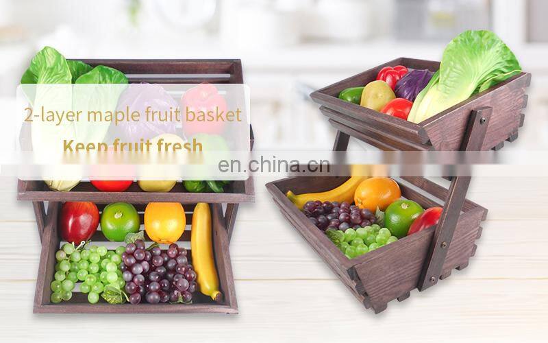 Nature Wood Fruit Basket 2 Tier Fruit Stand Countertop Fruit Holder For Kitchen