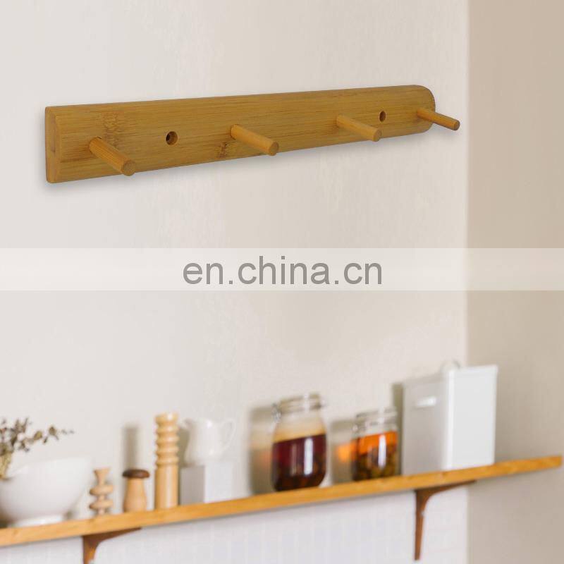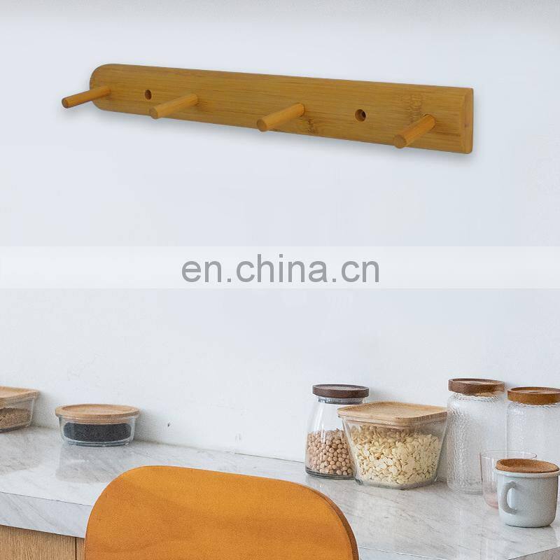 Durable 5 Hooks Modern Bamboo Wall Mounted Coat Hat Rack Bamboo Entryway Hanger