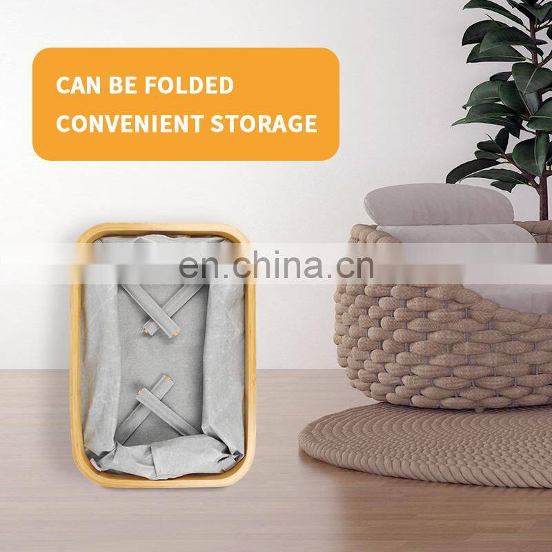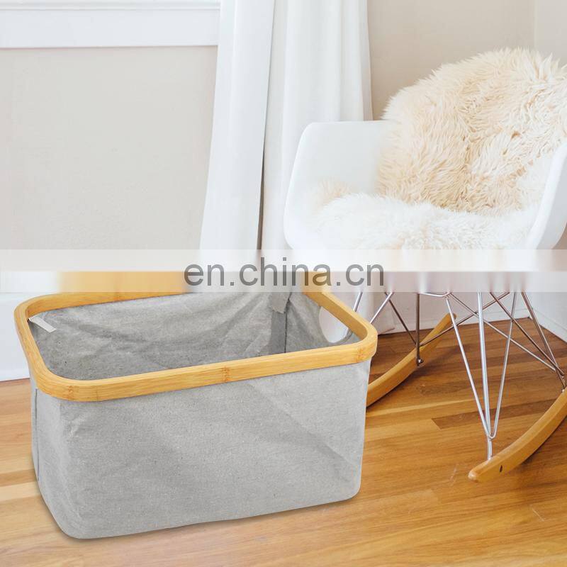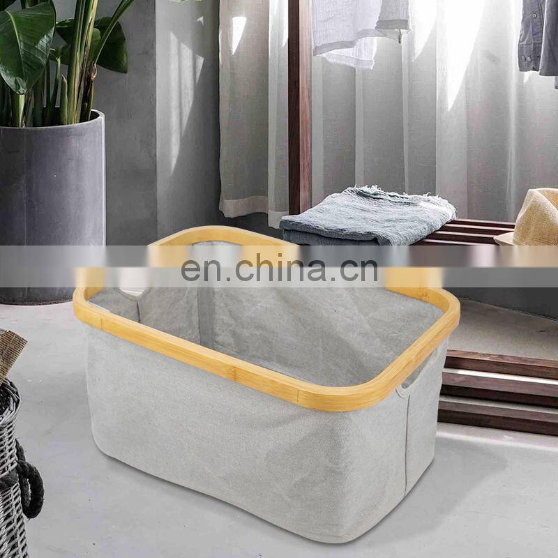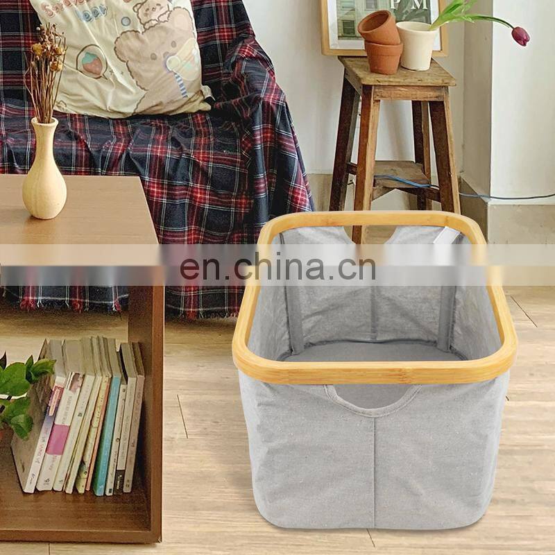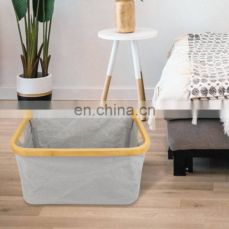 Modern Foldable Bamboo Canvas Hamper Single Laundry Basket