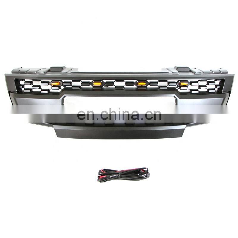 2021 New Arrival Pickup Truck Parts Matte Black Front Mesh Style Grill With LED Lights With Camera Bracket Fit For Ford F150