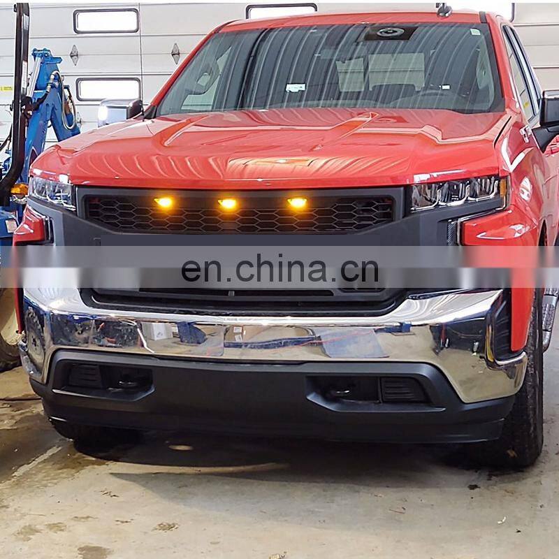 China Auto Parts 4x4 Pickup Truck Parts Front Bumper Grill Offroad Led Lights Grille Fit for Chevy Chevrolet Silverado 2019
