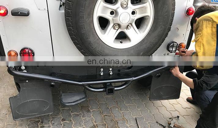 4x4 Offroad Sport Auto Parts NAS Style Black Powder Coated Steel Bumper Tread Plate Step Rear End Fit for Landrover Defender 110