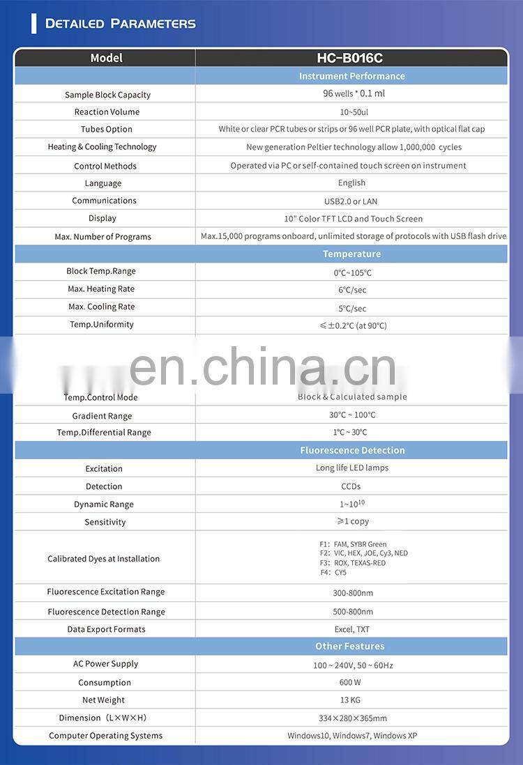 HC-B016C Advanced 96 Wells Realtime Pcr Test Machine Real Time Pcr System