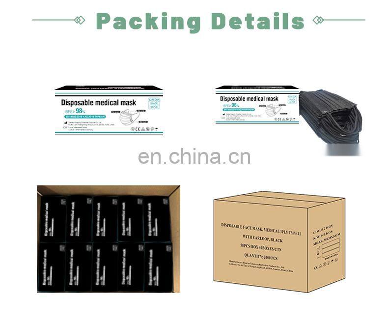 Type IIR 99% Filterate Black Surgical Facemask 3 Ply Disposable Medical Face Mask Black Masker Face