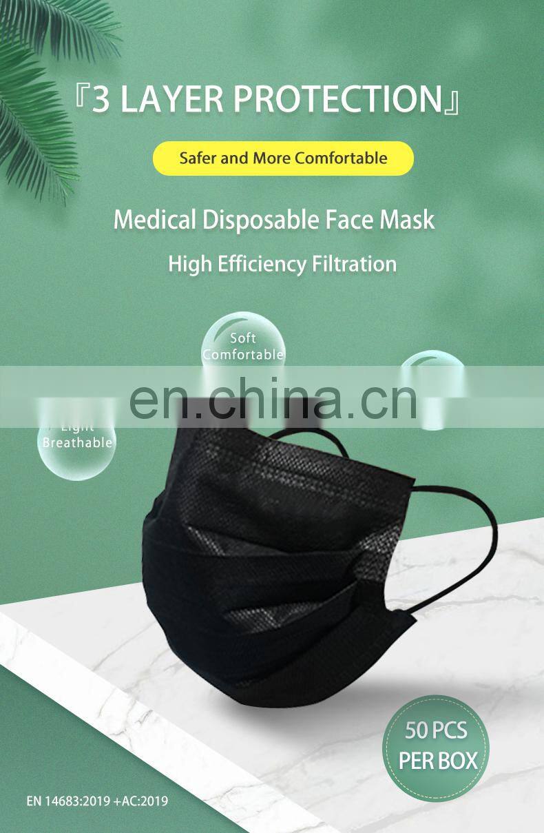 Wholesale Factory Non Woven Black Facemask Disposable Medical Face Mask 3 Ply