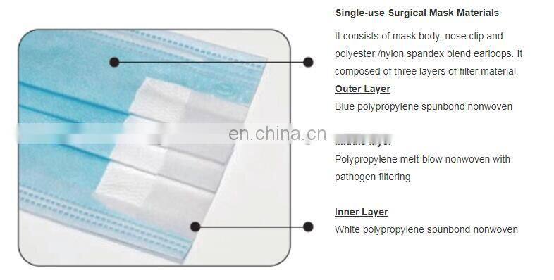 Three Layer Disposable Face Mask PP+melt Below+PP Nonwoven Blue White Black Medical Face Mask