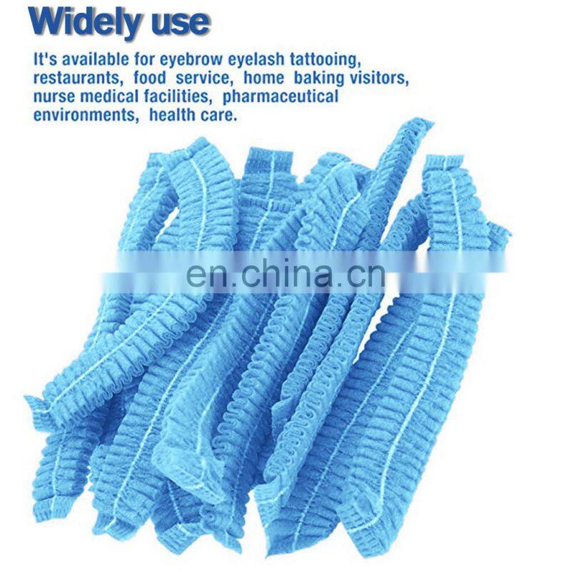 Non-woven PP/SMS Disposable Mob Cap Pleated Clip Cap Hair Head Cover With Elastic for Medical/Food/Beauty Industry