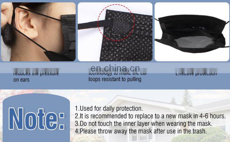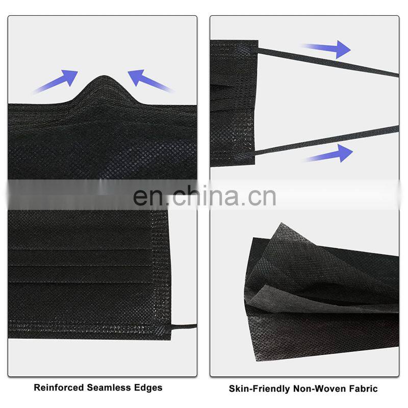 Soft Elastic Earloop 3 Layer Non-Woven Protection Breathable Disposable Face Mask Black