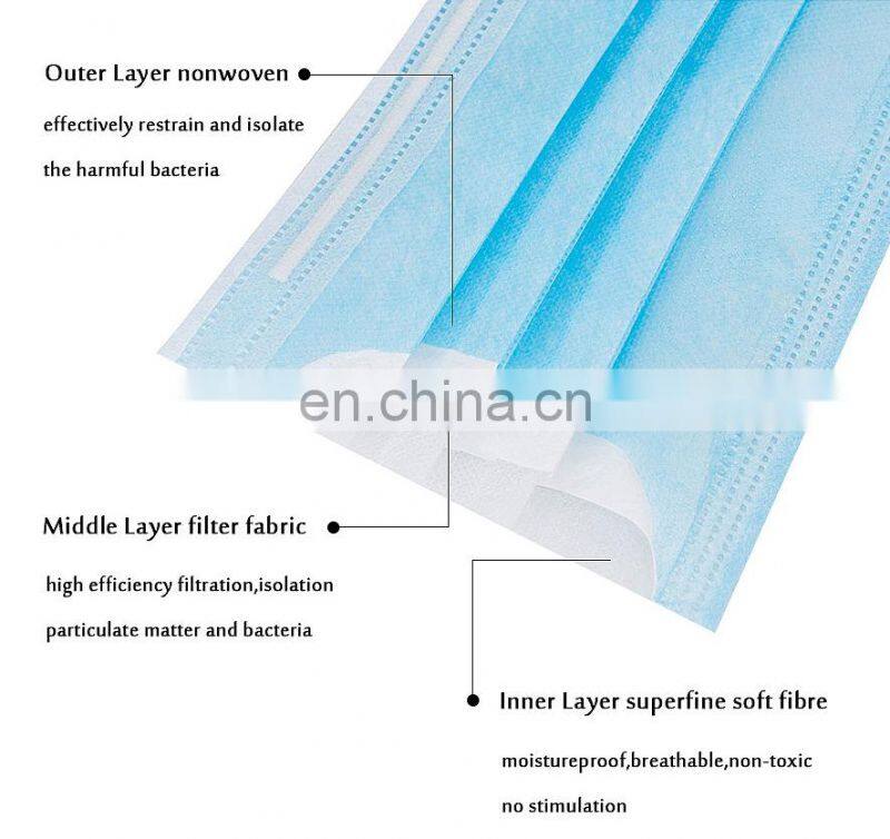 Non-wowen Mouth Covering Protective 3ply BFE 95% CE Certified Protective Face Mask Disposable