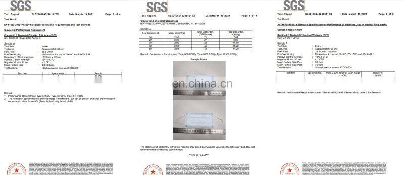 Custom Blue 3 Ply CE Certified BFE 99% Wholesale Mouth Covering Disposable Printed Surgical Face Mask