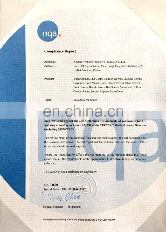 Our factory located in Hubei Xiantao---the base for disposable non woven products. Covering a land of 8,000 square maters. With 5 R&D staffs, 15 sales, more than 200 skilled workers, 5 quality inspectors.