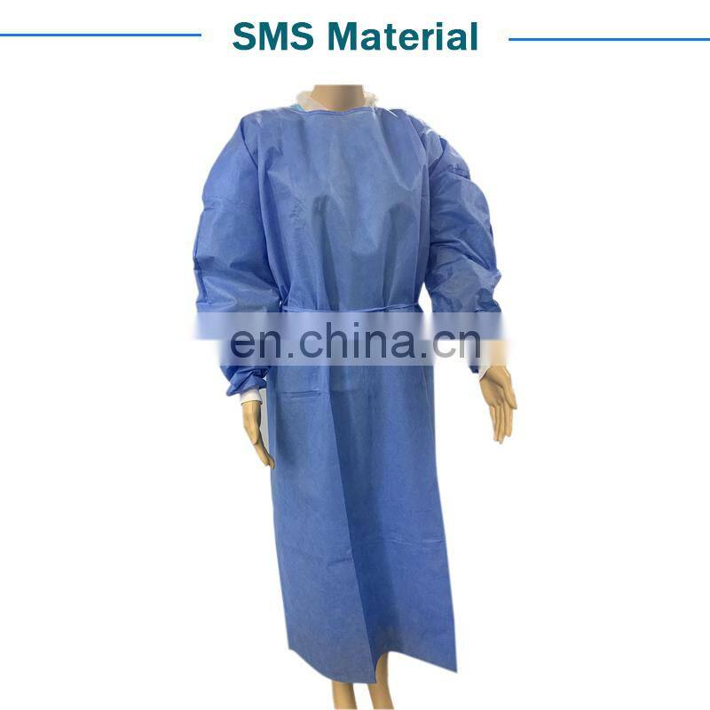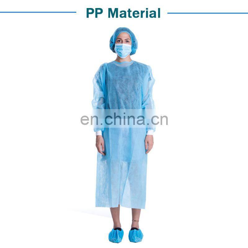 Disposable Non Woven PP SMS PPPE Iso Gown Isolation With Knitted Cuffs or Elastic Cuffs Work Gown