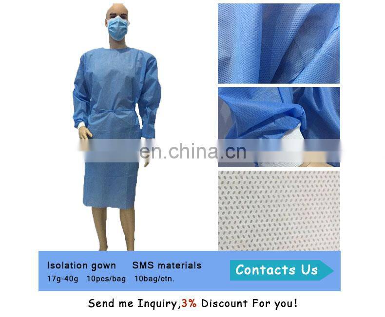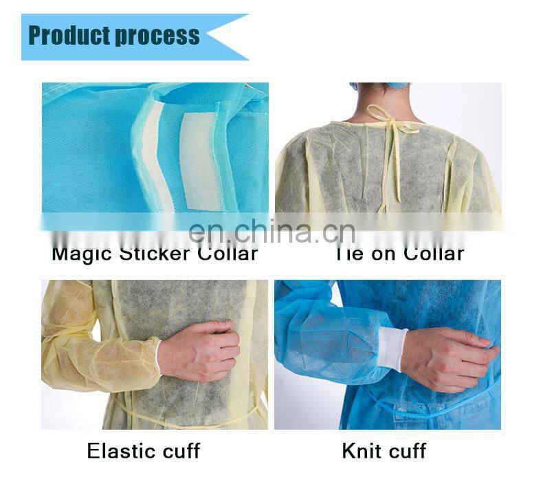 Disposable Non Woven PP SMS PPPE Iso Gown Isolation With Knitted Cuffs or Elastic Cuffs Work Gown