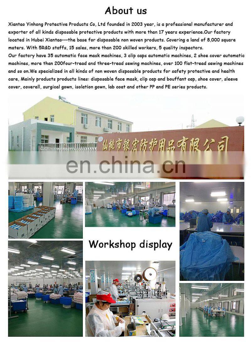 Xiantao Yinhong protective products Co., Ltd was founded in year 2003. It is a professional manufacturer and exporter for all kinds of disposable protective products with more than 18 years experience. Our factory is located in Xiantao Hubei, the base for disposable non woven products. Our factory is covering 8000 square meters, with 5 R&D staffs, 15 sales, more than 200 skilled workers, 5 quality controllers.
