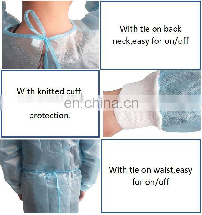 AAMI Level 2 Factory Directly Protective PP PE 40GSM Laminated Surgical Waterproof Disposable Isolation Gown