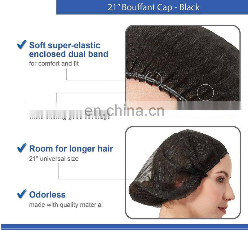 Non-wowen Elastic Disposable Bouffant Hair Caps Net 21''