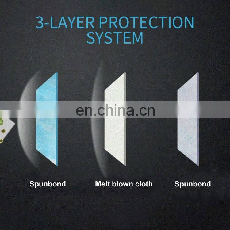 Product description: It consists of the mask body, nose clip and elastic cord. The mask body has three layers of structure: the inner and outer layers are non-woven fabrics, and the middle layer is melt-blown fabric.