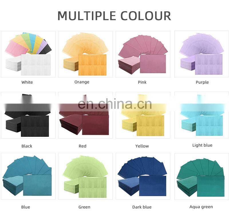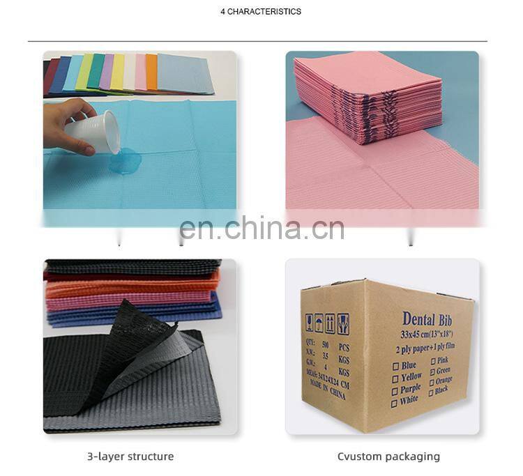 Dental bibs manufacturers custom printed medical disposable waterproof roll blue green white black pink dental bib