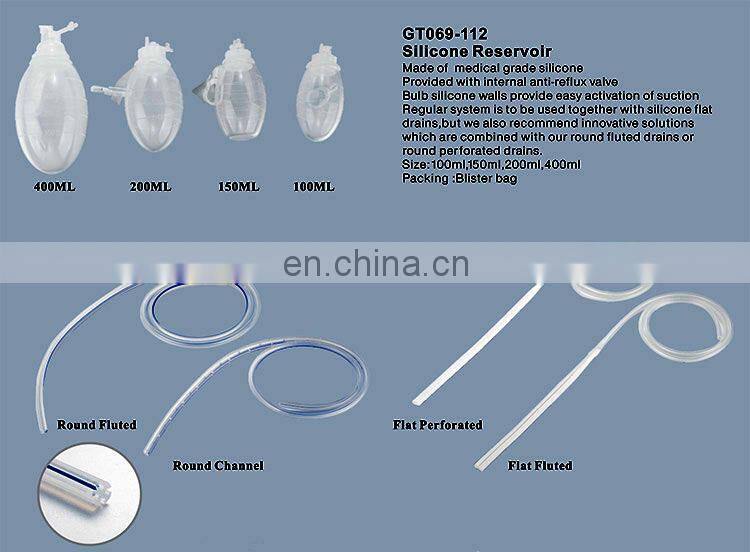 Medical 200ml silicone suction reservoir drain 100ml disposable sterile silicone suction reservoir wound drainage