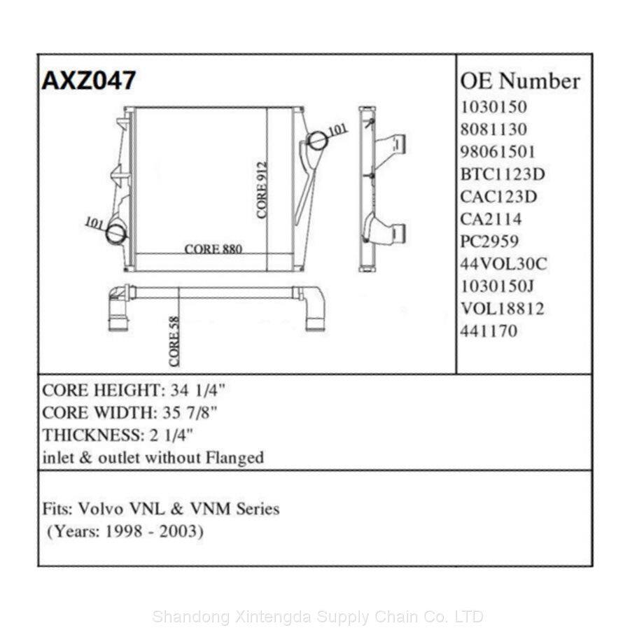 Tractor Parts Truck Charge Air Cooler Intercooler for Volvo Vn/Vt Cxu Vision Series OE 1030150 8081130 98061501 Btc1123D Cac123D Ca2114