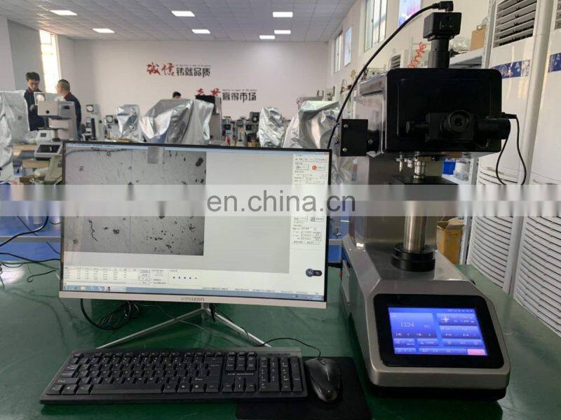 HVS-1000ZT Touch screen automatic turret digital display microvickers hardness tester It is mainly used for the measurement of the micro Vickers hardness of various metals and some non-metal materials. It can test various parts (machined parts, forgings, cast iron, steel castings, etc.), non-ferrous metals, thermal after-treatment parts, and various micro And thin parts, glass, ceramics, agate, gemstones, etc. for hardness measurement, at the same time suitable for carbonization, quenching and hardening layer effective depth, coating, surface coating and welding parts heat-affected part measurement. It can also be used to observe the internal metallographic structure of various metal parts and to collect, display and output the image.