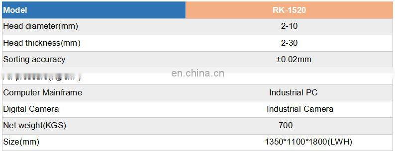 Auto RK1500 Glass Plate Auto Micro-Parts CCD Inspection Machine AOI Customized Screw Optical Sorting Machine for Fastener