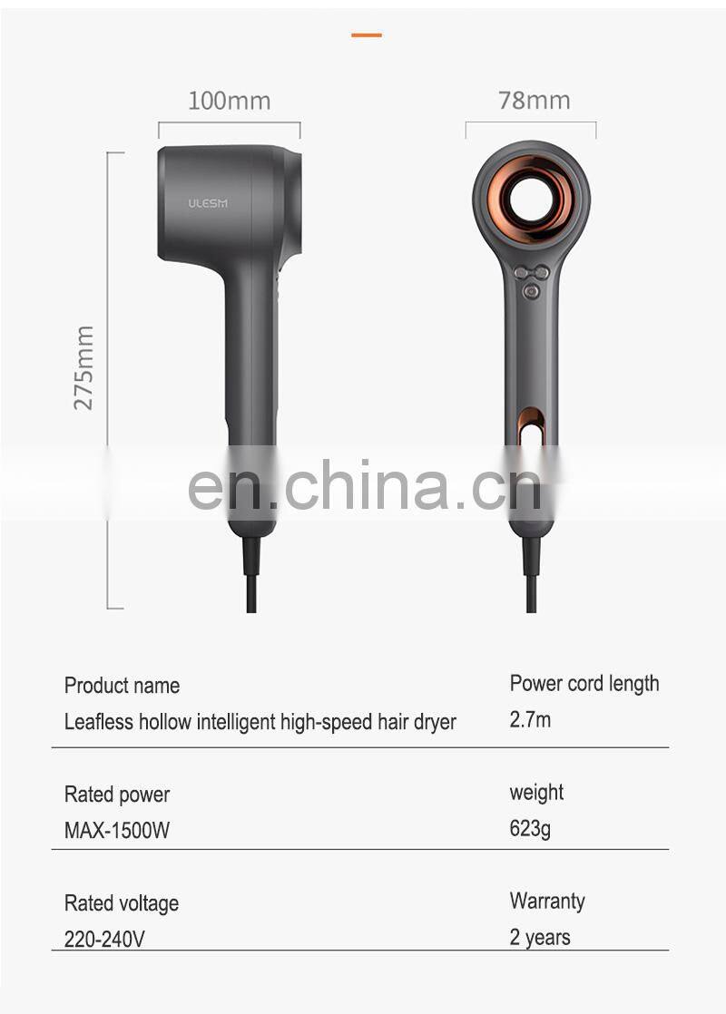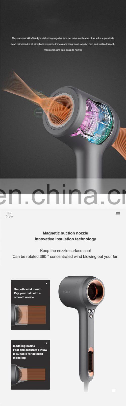 Professional Portable Leafless Hair Dryer Magnetic Nozzle Noise Reduction Thermostatic Negative Ion Hair Dryer Air Mode