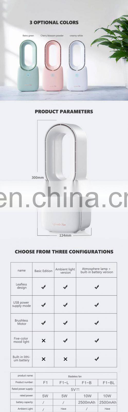 USB Super Quiet Low Noise Portable Bladeless Fan Handheld Mini Cooler No Leaf Handy Fan