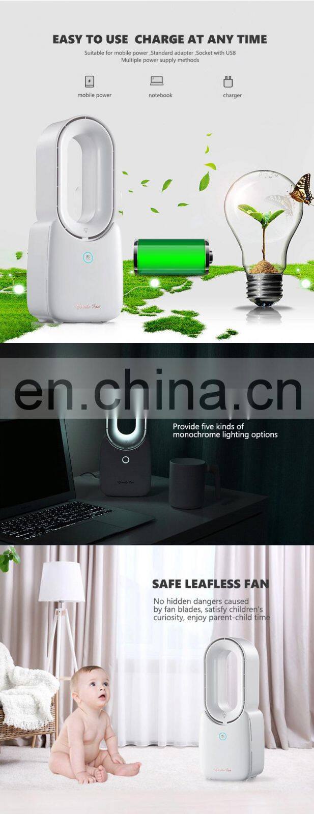 7 Color LED Light Home USB Desktop Air Cooler Fan Leafless Fan