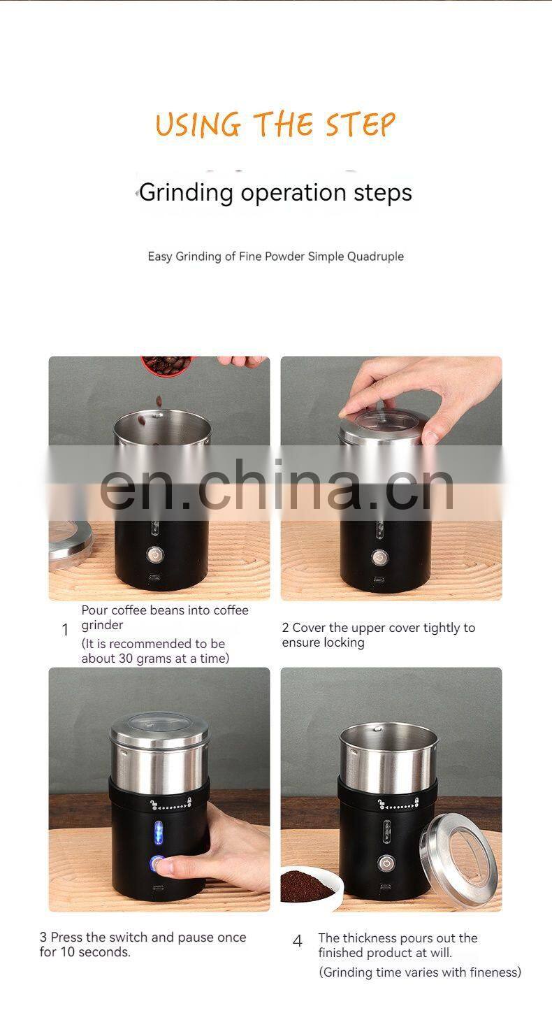 - 2021 Portable Stainless Steel Grinder Coffee Spice Nuts Grains Bean Mini Electric Grinder