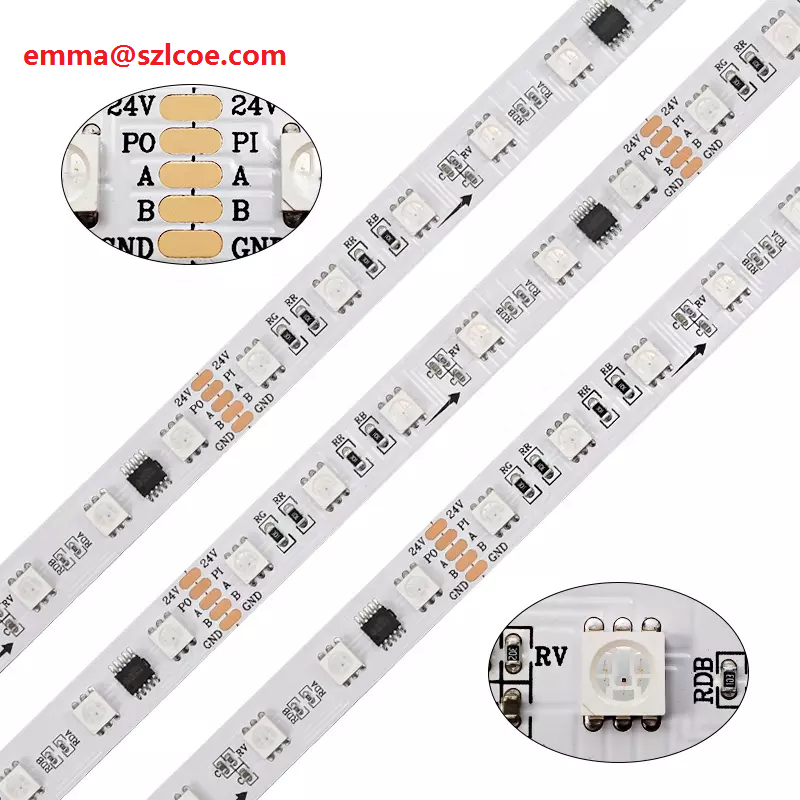 DMX512 Full Color Digital RGB 512 60leds Flexible LED Strip 12V 24V Addressable RGB Flex Dmx512 LED Strip