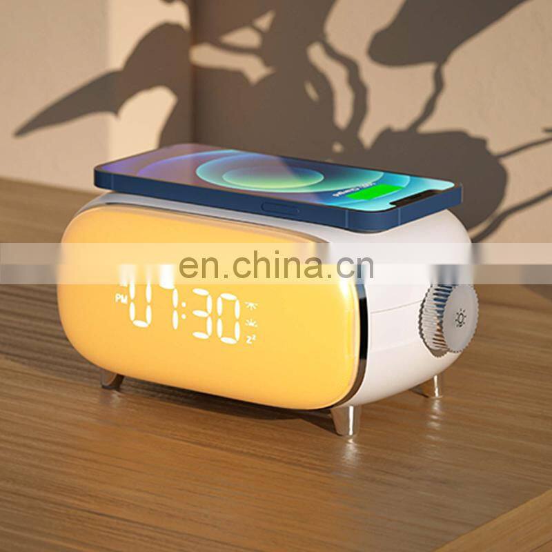 2022 New Desktop Electronic Alarm Clock Wireless Charger Mobile Phone Charger Digital Sun Wake Up Night Light