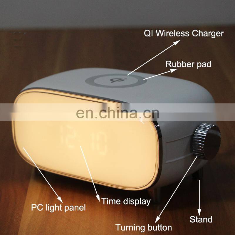 Home > Products > Others > 2022 New Desktop Electronic Alarm Clock Wireless Charger Mobile Phone Charger Digital Sun Wake Up Night Light