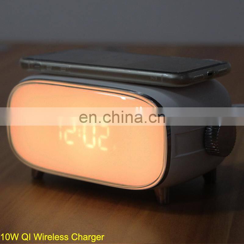 - Wireless Charging Wake-up RGB Light Atmosphere Lamp BT Music Speaker Alarm Clock Lighting Modes Wireless Fast Charging 15W