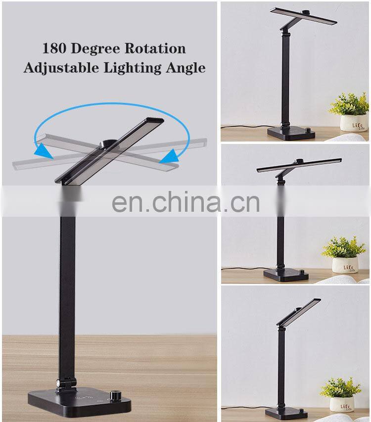 2023 LED Wireless Charging With Usb Port Brightness Office Work Eye Protection Reading Light Wireless Charger Desk Lamp