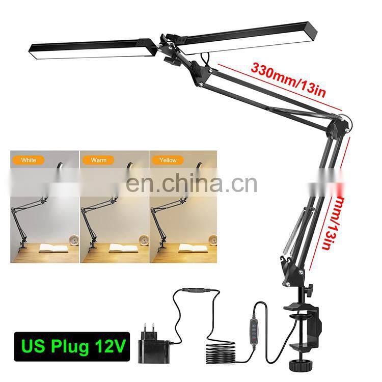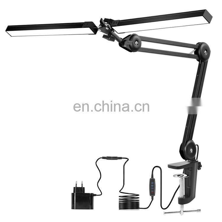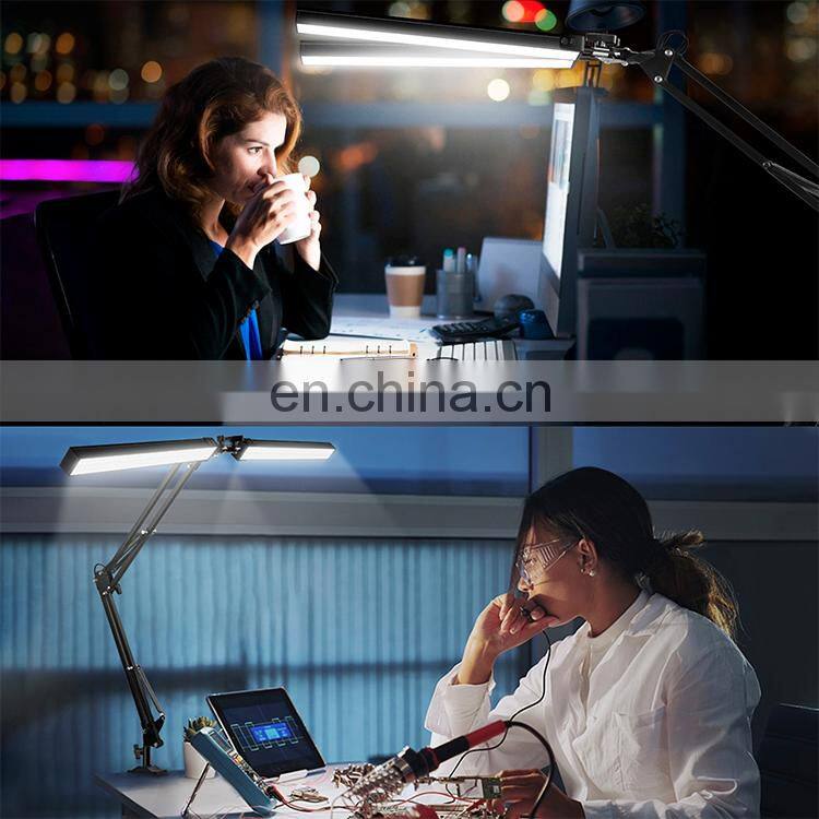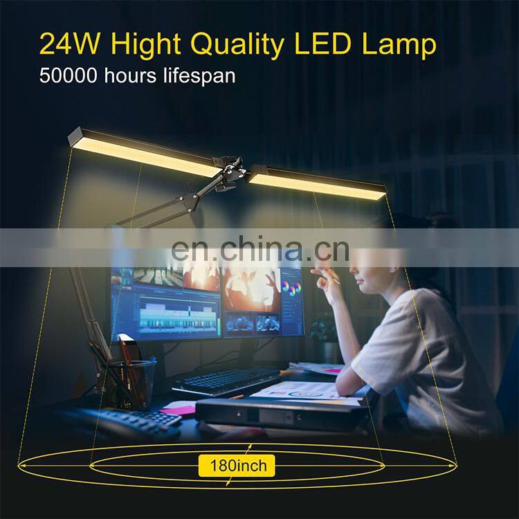 Home > Products > Others > Double Head Task Lamp 24w Flexible Read Desk Lamp Modern Restaurant LED Swing Arm 10 Brightness Levels Clamp Task Lamp